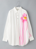 片側の大きなフラワープリントが目を引くブラウス。