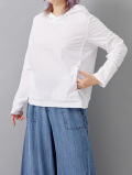 トレーナーやニットの襟からフードを出してカジュアルコーデに◎