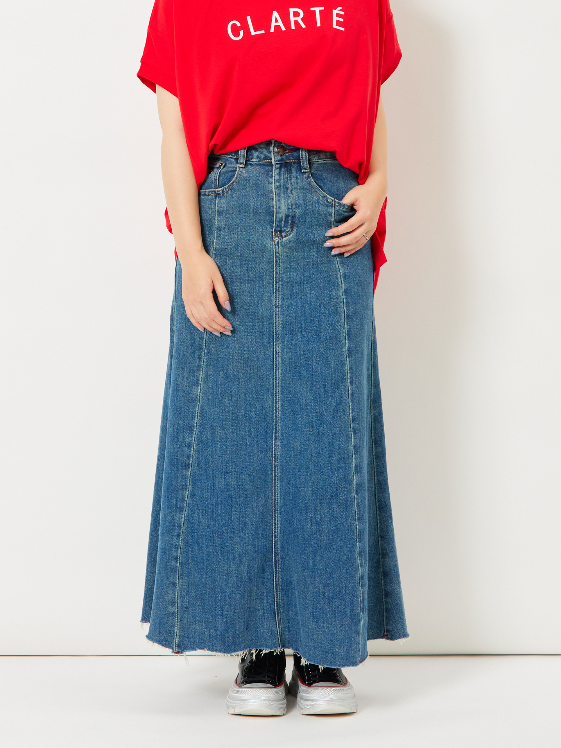 251004 la primaveraチャンネル チャンネル登録はこちらから 使用アイテム オーバーオール風ジップアップデニムベスト 10,800円(税込) ムラ染め風チェックシャツ 19,900円(税込) 切りっぱなしデザインロングデニムスカート 15,800円(税込) コーディネート